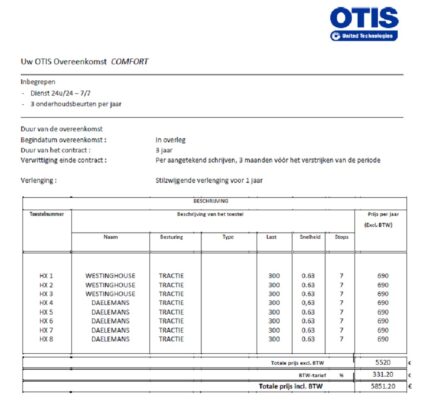 Toch ben ik nu overtuigd dat we te veel betalen : ik heb onder andere een offerte van Otis die dat toont. Ik zeg niet dat we met Otis of een andere dan Kone moeten werken maar ik zeg dat we deze overeenkomst moeten herzien. Nog meer nu nadat we de aanpassingen die we verleden jaar aan deze liften lieten doen. Denkt iemand mogelijk met Kone te debatteren om van hen betere voorwaarden vanaf 2019 te krijgen. Of moeten we nog één jaar wachten ?